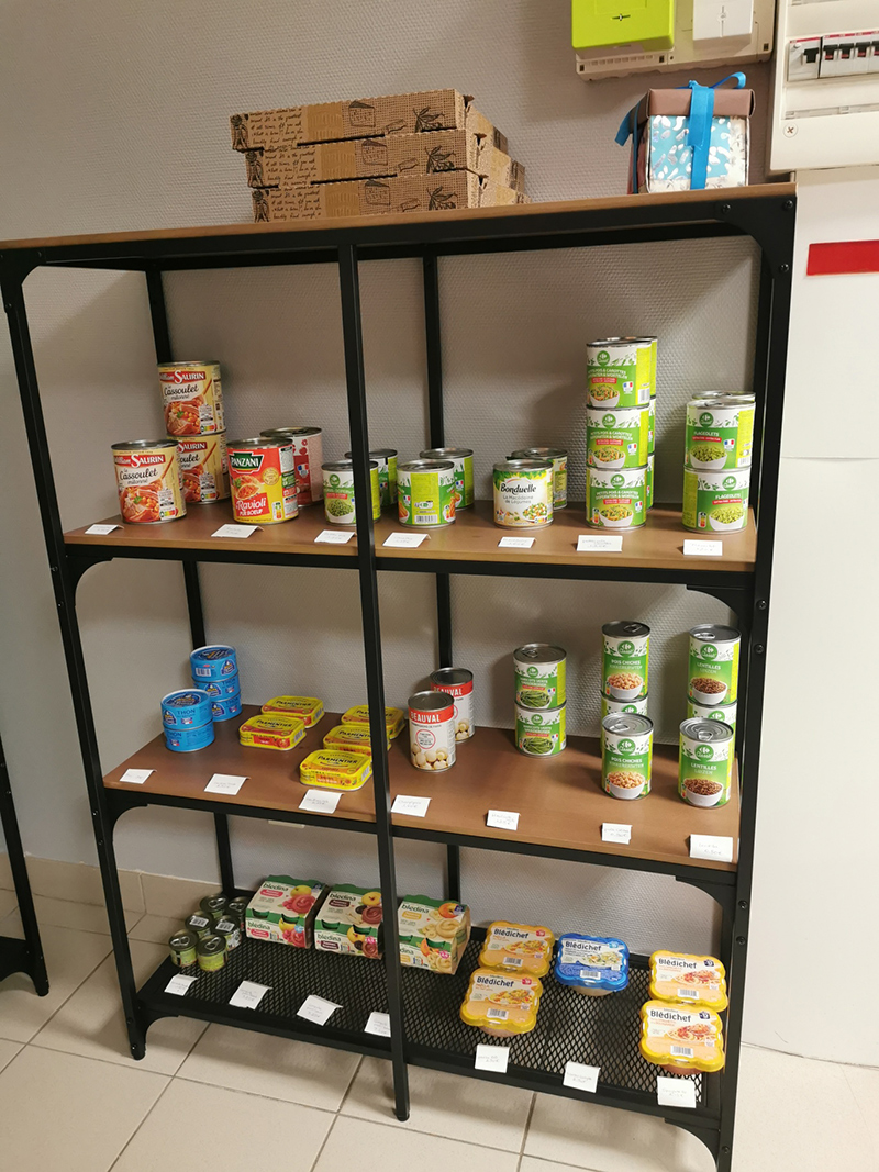 - Une partie repas : avec des pâtes, du riz ou encore des boites de conserves